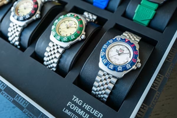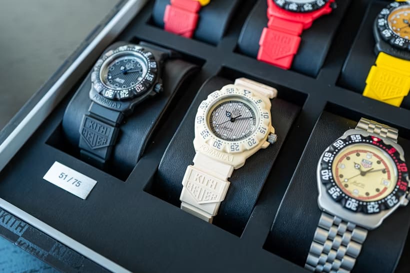 These watches, of course, heavily pay homage to the iconic F1 line, while incorporating new elements, such as the "Kith Heuer" logo and city-inspired designs. 🤩
