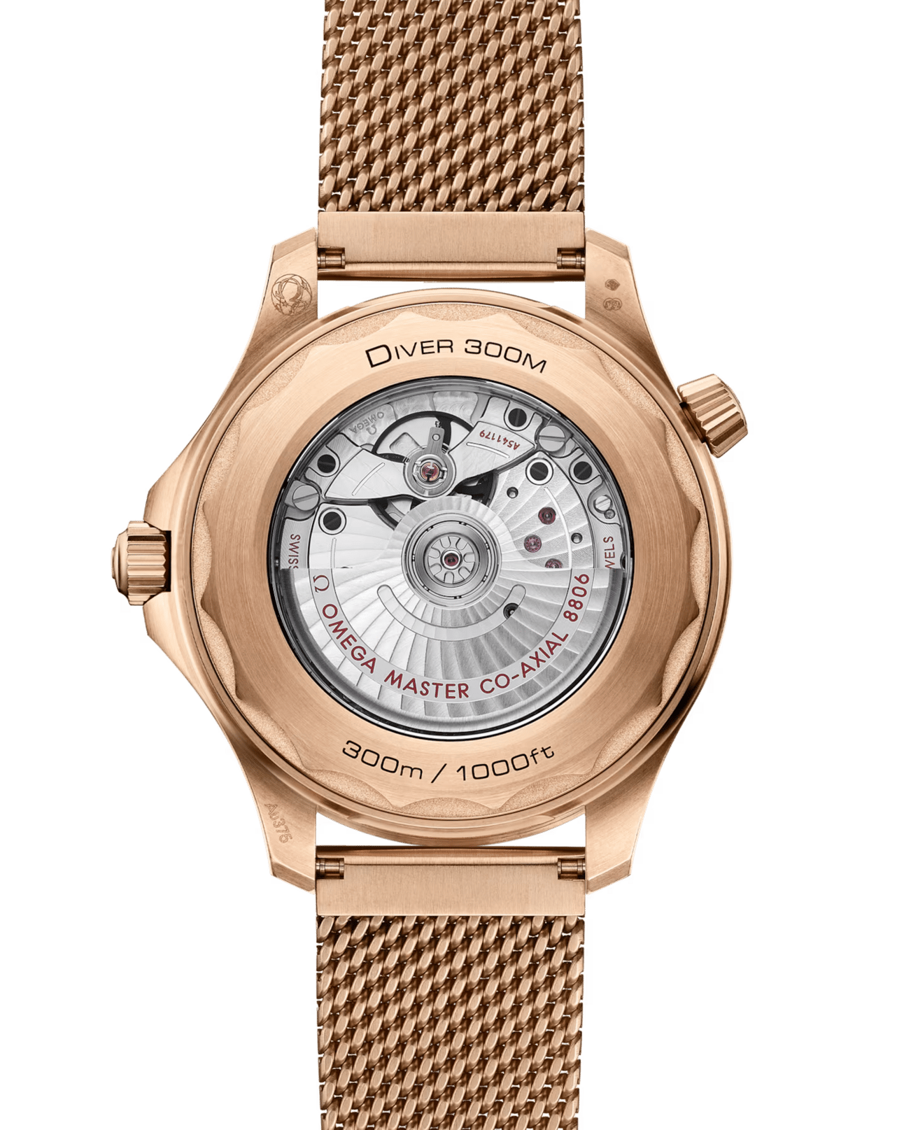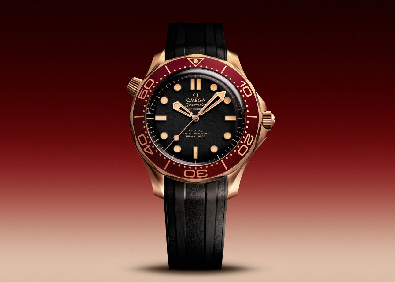 This model pairs Omega’s proprietary 9k Bronze Gold alloy with a deep red aluminium bezel, available on either a black rubber strap or a matching Bronze Gold mesh bracelet. ⚫🔴